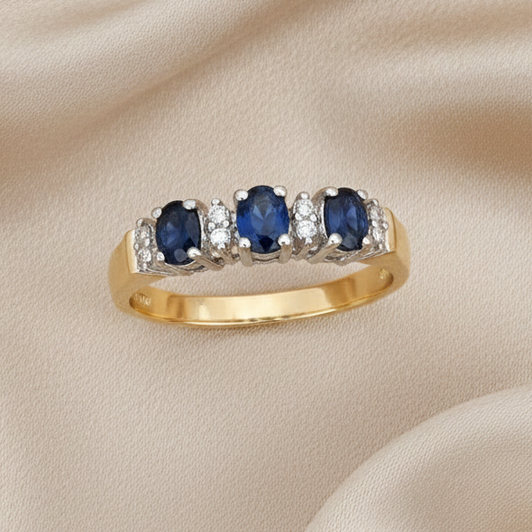 0.5 Ct Oval Natural Black Sapphire and Diamond Halo Cocktail Ring in 9ct Yellow Gold